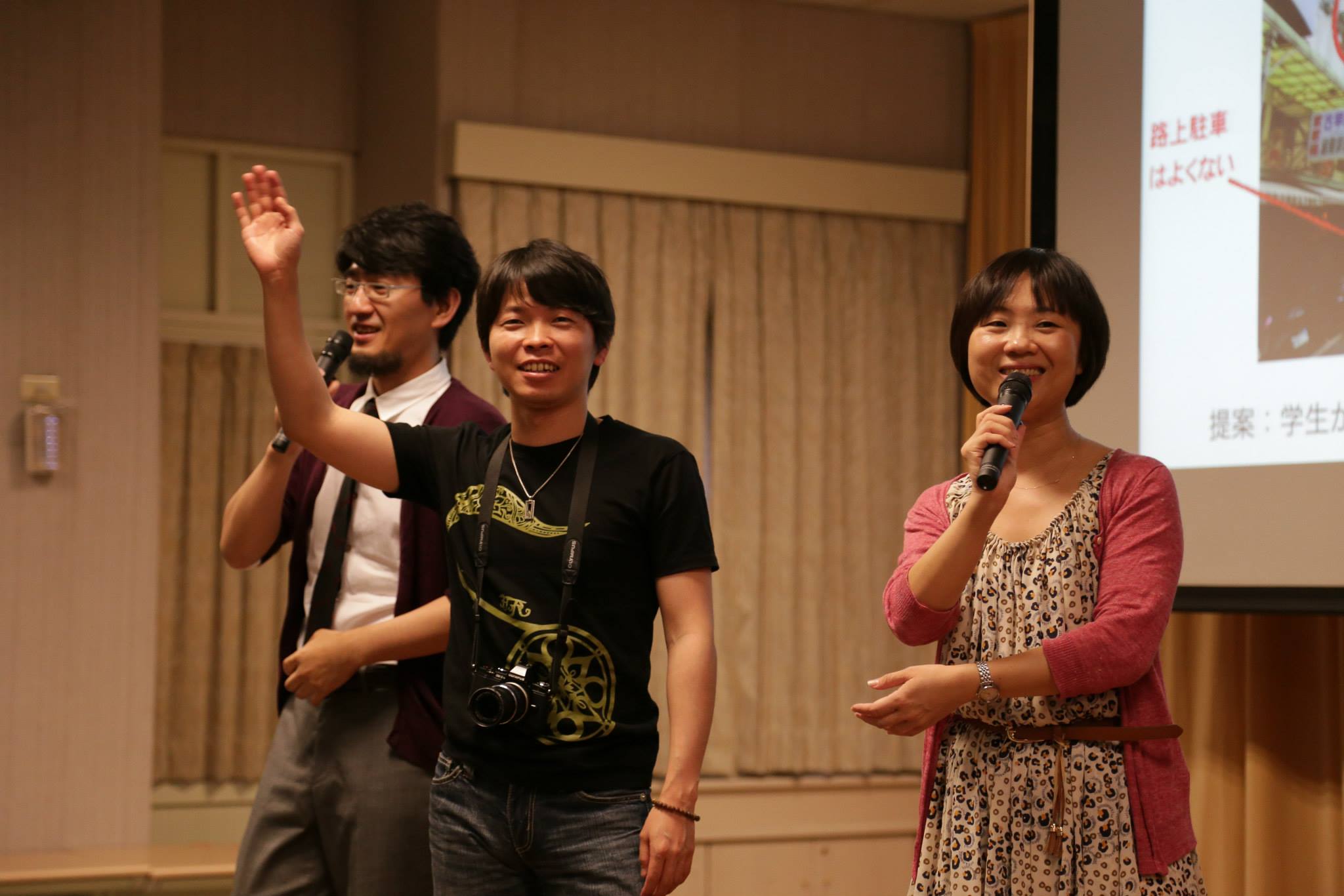 向かって右の方がこの企画の主催者李先生。左は友人ホリ