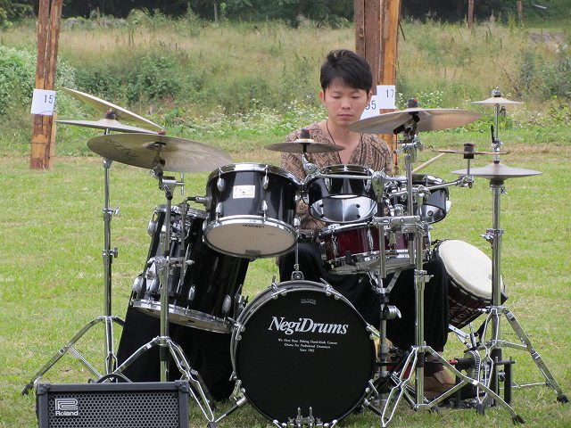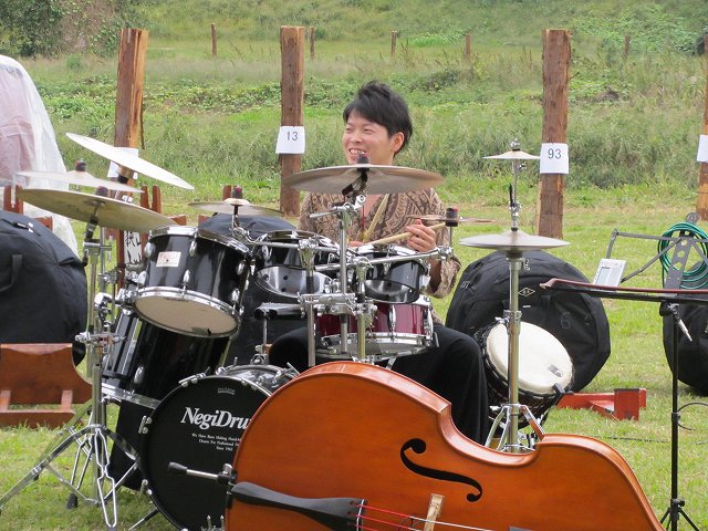 あえて芝生にそのままドラムをオン!